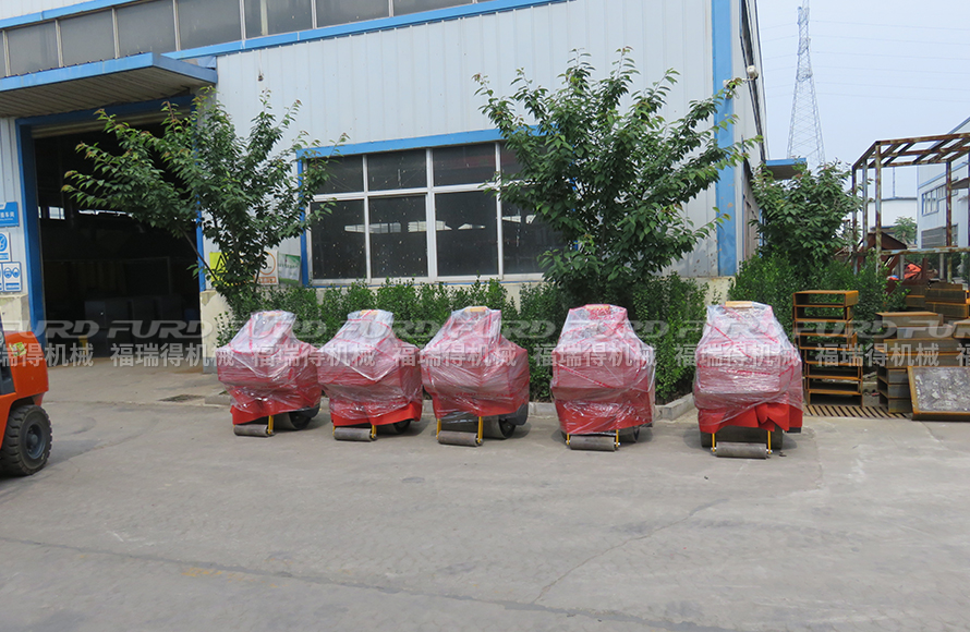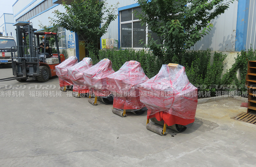 福瑞得5臺手扶單鋼輪壓路機打包裝車發(fā)往寧波