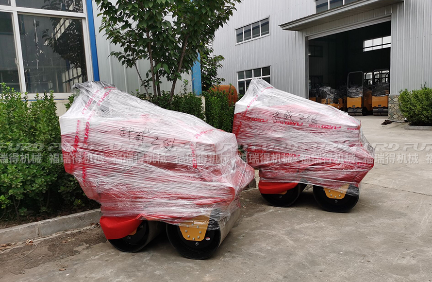 福瑞得機械7臺小型壓路機打包發(fā)出