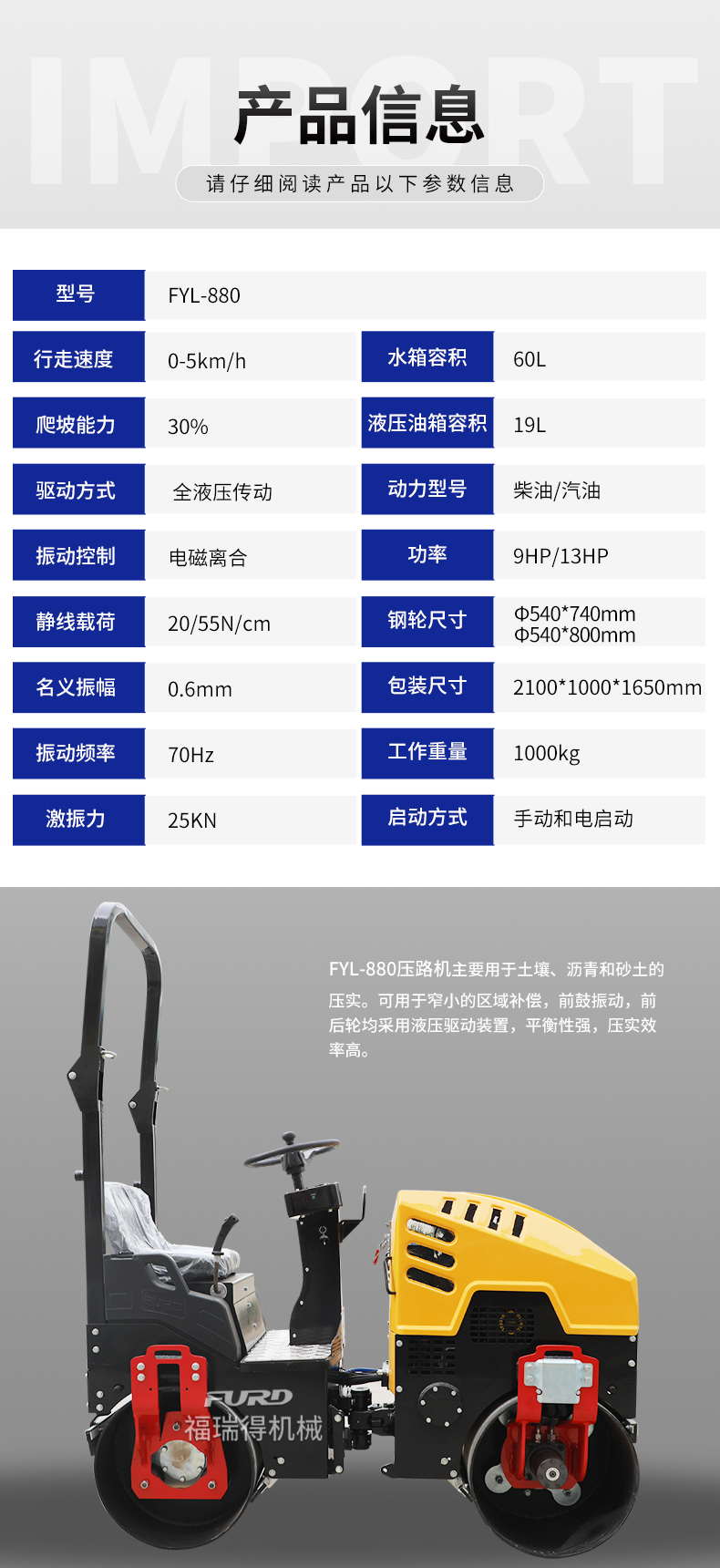 FYL-880 1T液壓振動壓路機