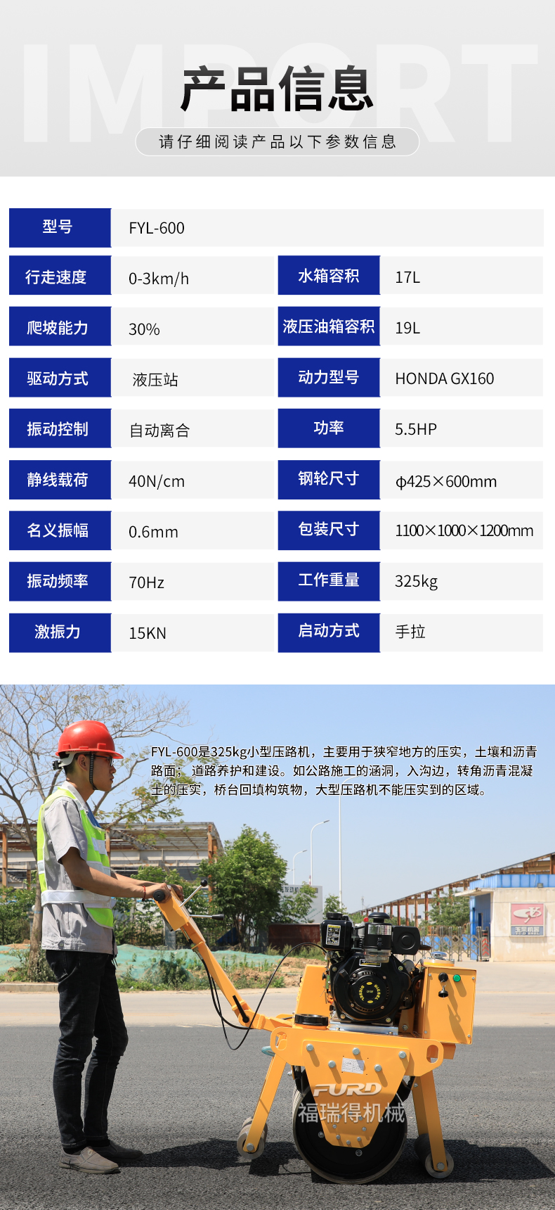 FYL-600 單輪手扶小型壓路機(jī)