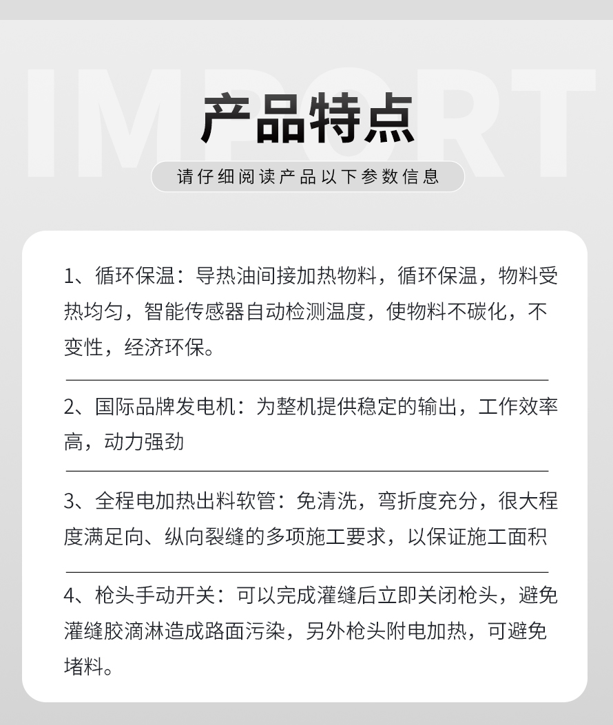 瀝青灌縫機(jī),使用原料為瀝青灌縫膠,主要用于瀝青路面不規(guī)則裂縫、混凝土路面、橋梁伸縮縫、上下水道、煤氣管埋設(shè)機(jī)鋪裝路面的連結(jié)處防水處理,而專門設(shè)計(jì)、生產(chǎn)的瀝青補(bǔ)灌縫專業(yè)機(jī)械。
