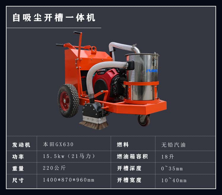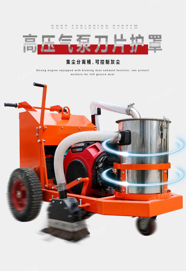 混凝土路面開(kāi)槽吸塵一體機(jī)集開(kāi)槽、吸塵為一體,解決了傳統(tǒng)開(kāi)槽機(jī)工作產(chǎn)生灰塵的問(wèn)題