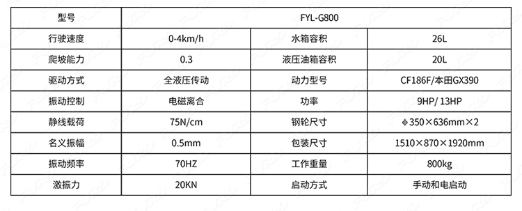 FYL-G800 手扶雙鋼輪凸輪振動壓路機